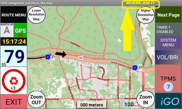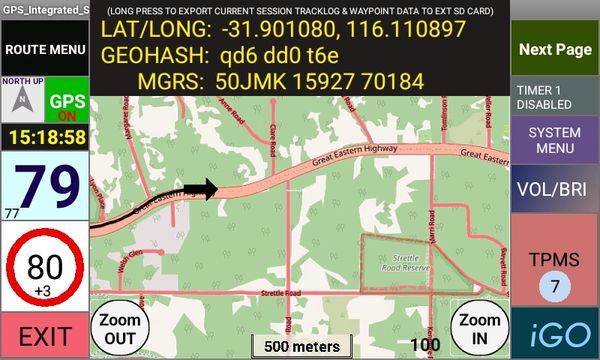The Outback Navigation Information System (ONIS) features a easy to select popup screen that instantly provides the user with the current location in displayed in longitude & latitude, geohash and MGRS (Military Grid Reference System)
