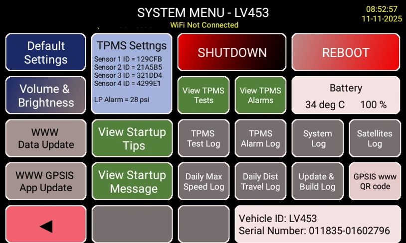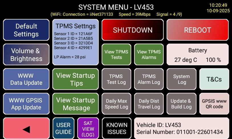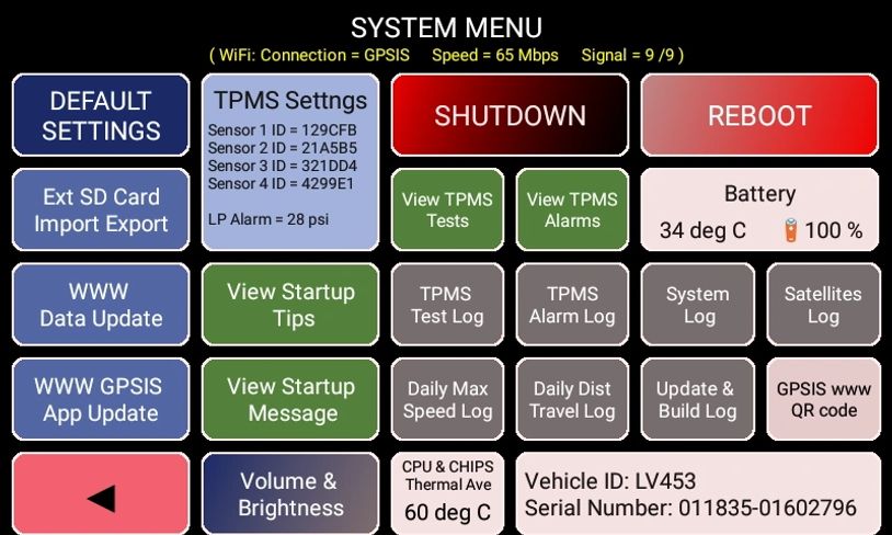 The user can add a unique vehicle ID to the ONIS which will be used in various screens and log files.